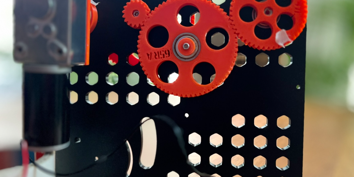 Unfortunately, I had a change management problem when designing the spooler: The picture shows the first drawings: Based on 32 windings, the filament guide therefore had to change direction exactly once after 32 windings. I then designed the gear wheels here.