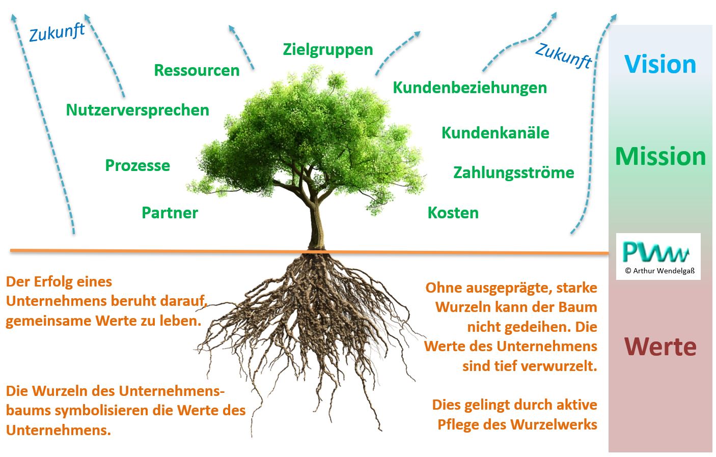 Die Mission beschreibt als Unternehmenszweck wie wir die Menschen glücklich machen, wie wir die Welt verändern oder was wir für den Kunden leisten. Darauf basierend blicken wir in die Zukunft um unsere Vision zu generieren, die sich von Zeit zu ändern kann um sich neuen Marktentwicklungen anzupassen (Vision 2000, Vision 2010, Vision 2020 …)